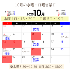 TOP > お知らせ・ブログ > お知らせ・最新情報 > 10月営業日時間のお知らせ 2025.09.29 お知らせ・最新情報 10月営業日時間のお知らせ 10月営業日時間のお知らせ東陽町・住吉から徒歩圏内の整骨院 おおいし整骨院です。 来月の営業日・時間をお知らせいたします。日曜日の営業日は【5日・19日】水曜日の営業日は【1日・15・29日】となっております。 詳細はカレンダーをご覧ください。 前へ 一覧へ戻る カテゴリー お知らせ お知らせ・最新情報 よくある質問 首・肩の症状 腰の症状 膝・足の症状 姿勢について マトリクスウェーブについて 膝の痛み 足首の痛み その他 全てを見る アーカイブ 2025年9月 2025年8月